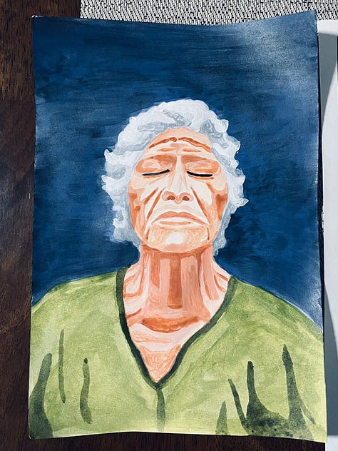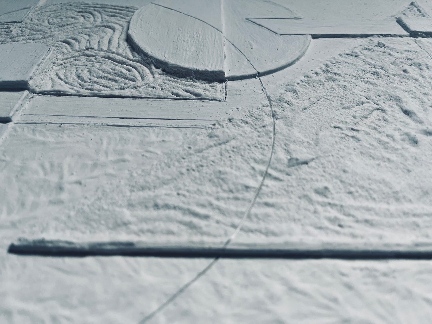 Si bien no fue mi primer contacto con la expresión plástica, si lo fue con la constancia y seriedad técnica… me costó mantener el espacio semanal, las horas dedicadas a cada obra, y sobre todo no salir corriendo frente a la frustración de embarrar el papel una y otra vez porque mis manos no cooperan con la imagen que tenía en mente. Al final, la profesora eligió exponer mis dos desafíos más grandes de este año: un retrato, hecho justo después de la muerte de mi abuela, y un cuadro completamente blanco, trabajado en relieves. Colores, pero figurativos. Capas, pero de enduido. Ambos completamente distintos a lo que estoy acostumbrada.